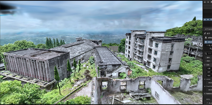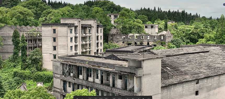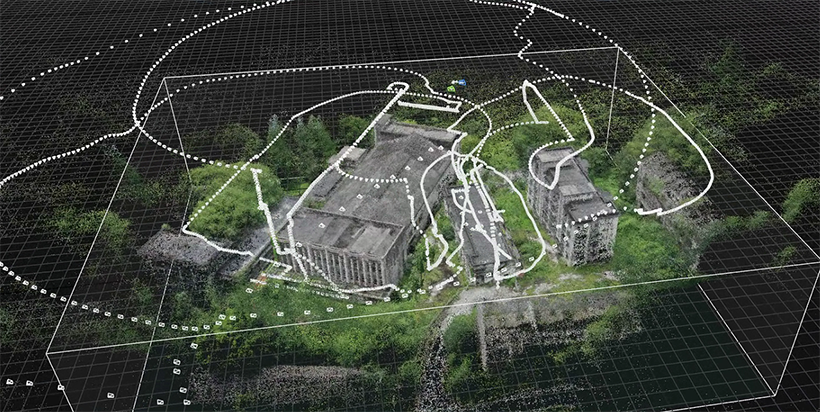 位于山顶坡道上的废弃厂区,采用无人机扫描